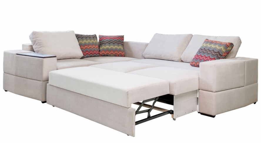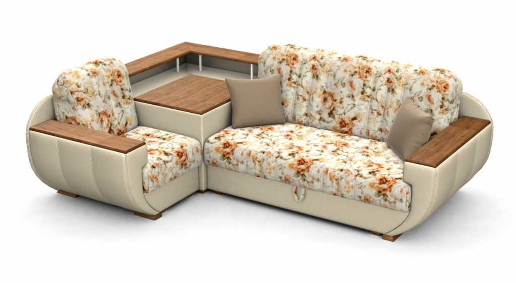 | Угловой | Могут быть левосторонние, правосторонние, Г-, П-образные | Превращается в полноценное спальное место | Не подходит для небольших помещений, так как занимает много места |