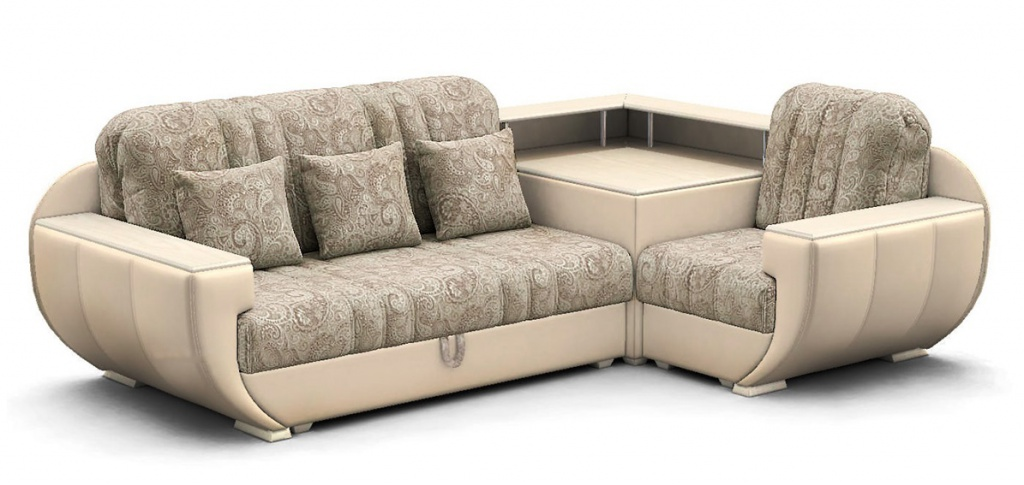 Такая мягкая мебель станет сочетанием кресла, дивана и журнального столика. В столе сделаны несколько полочек для документов, книг и различных нужных мелочей, что нравится клиентам, которые оставляют свои отзывы.