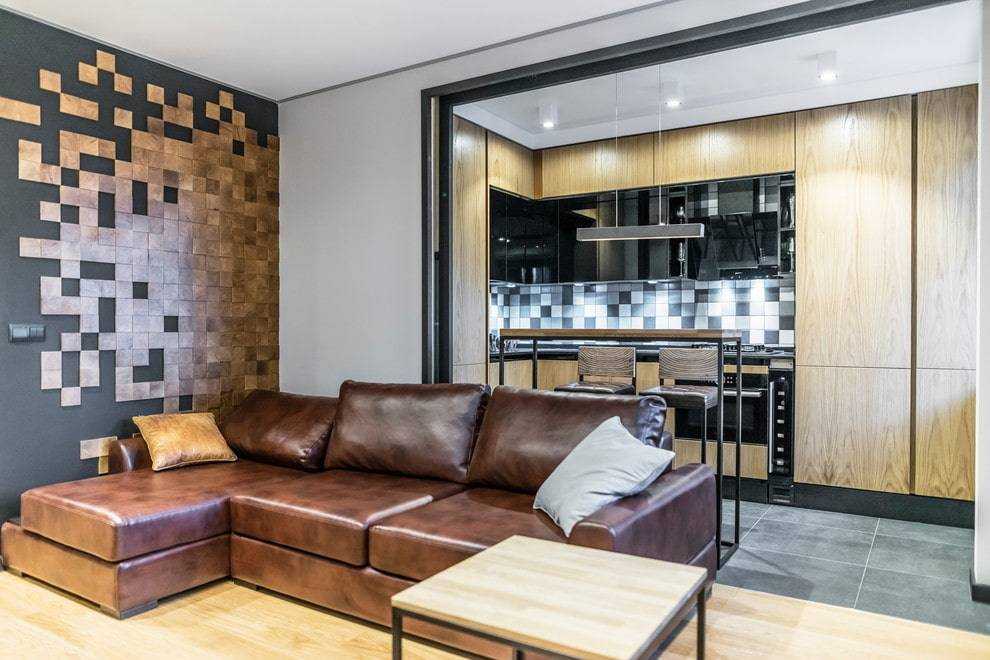 Ещё один пример удачного сочетания – когда диван и стены комнаты подбираются в темных тонах, например, коричневом или венге.