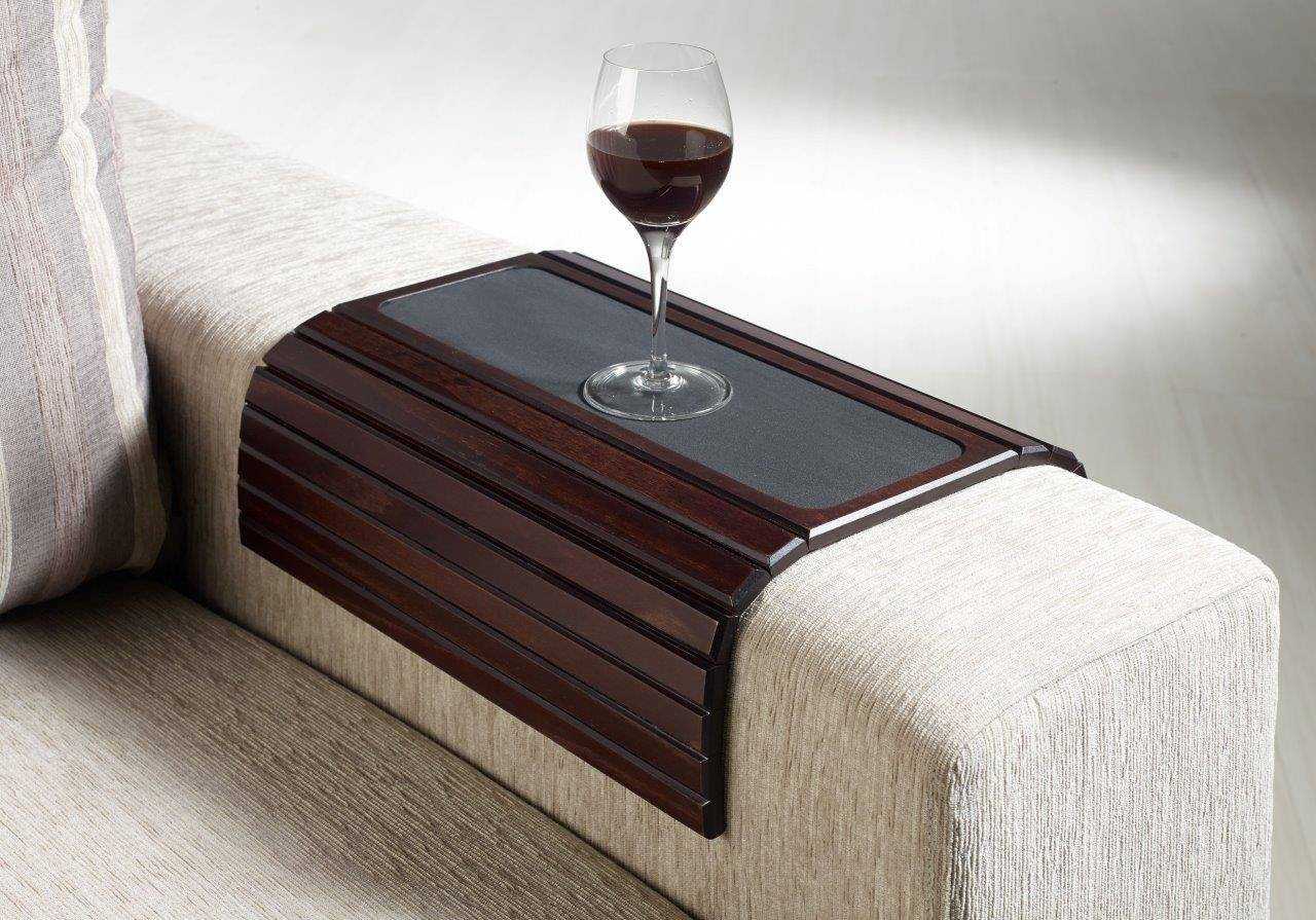 - Диван со столиком – прекрасный вариант для тех, кто любит компактность во всем. Функцию столика иногда играют широкие подлокотники, но в большинстве случаев это подголовник. Его достаточно лишь опустить, и раскладной столик готов. Он может служить как место для журналов и различных бумаг. Такая мебель очень удобна как и для офисов, так и для жилых домов.