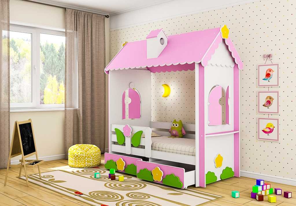 Мебельные производители представили на рынок широкий ассортимент детских кроватей в виде домиков. У них разные габариты, дизайн и дополнительные элементы. Например, для девочек будет интересен, стилизованный под пряничный, домик-кровать или домик с окошками, а мальчикам интересны импровизированная пиратская морская каюта или дворец с горкой. Они предназначены не только для активного отдыха, но и для школьных занятий. Конструкцию оснащают дополнительными полками, столом, ящиками для канцтоваров и других мелких предметов. Мебельная индустрия предлагает деревянные домики кровати из ДСП, МДФ и пластика. У каждой конструкции свои уникальные черты.
