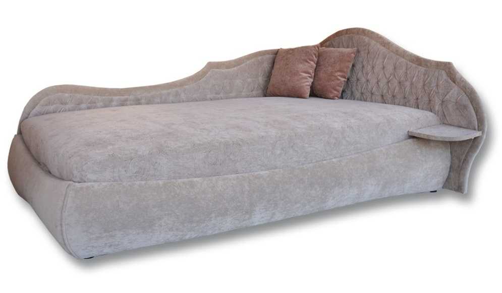 - Элегия – это тахты с подъемным механизмом, которые отличаются аристократичным дизайном, подходят под интерьеры в стилях классика, прованс. Ассортимент включает модели с фигурным изголовьем, угловые варианты с полочками, выполненные в основном в бежевых и коричневых тонах, но есть также ярко-розовые. Помимо этого, производитель предлагает детские тахты радужных расцветок. Размеры спального места: ширина от 90 до 160 см, длина – 200 см.