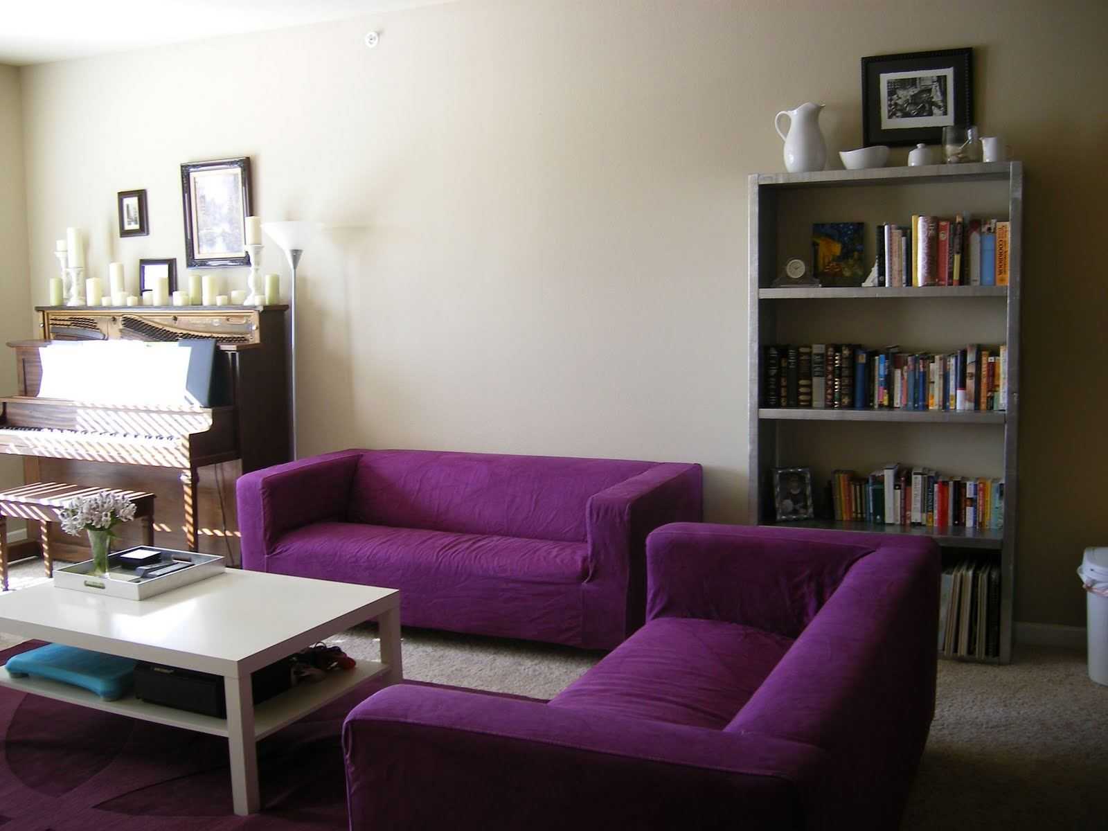Идеи по размещению дивана в интерьере фиолетовых тонов смотрите в следующем видео.