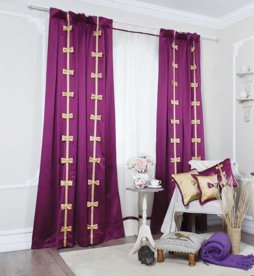 К основным стилям интерьера со шторами фиолетового тона можно отнести следующие: