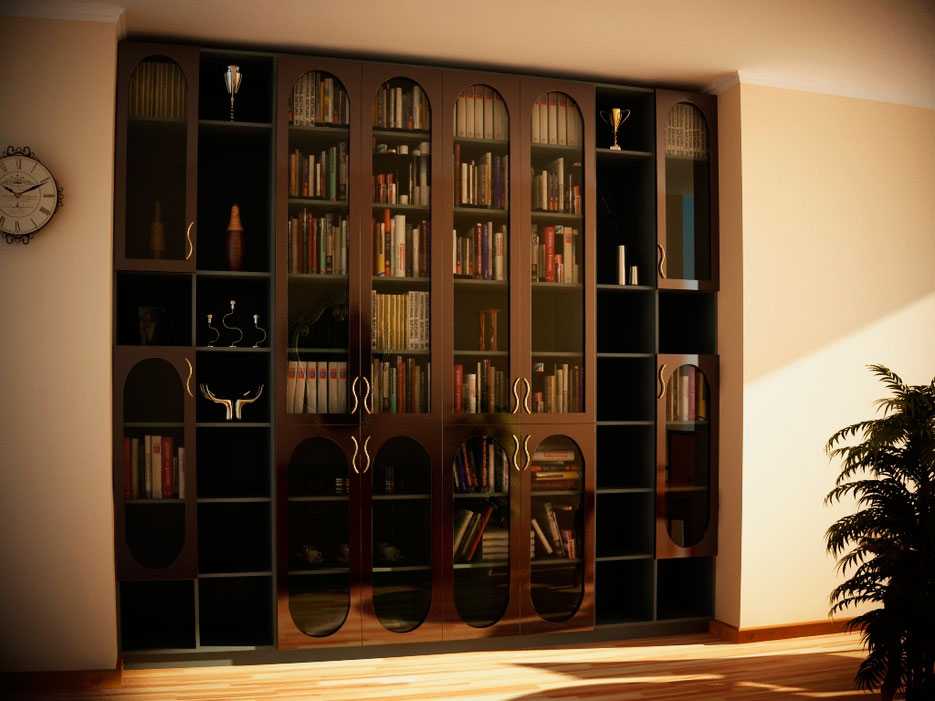 - закрытыми — такие модели считаются наиболее оптимальными для конструкций, предназначенных для хранения книг. Это обусловлено тем, что они оснащаются дверцами, поэтому книги надежно защищаются от прямых солнечных лучей, пыли или возможного попадания влаги. Для более привлекательного внешнего вида такого шкафа используются дверцы из стекла, но для этого используется стекло, обладающее высокой прочностью.