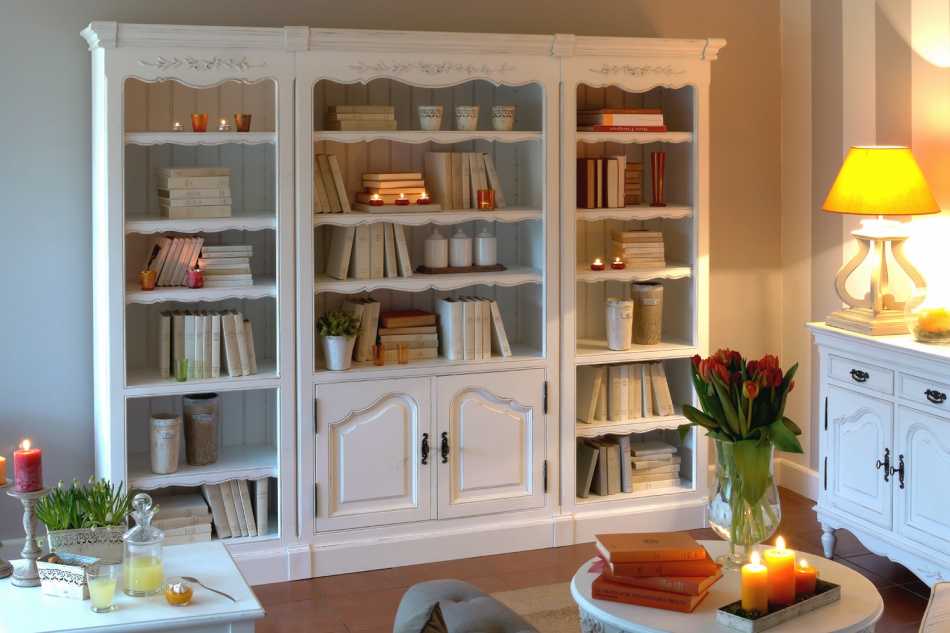 - для прованса желательно подобрать раздвижной книжный шкаф пастельных тонов;