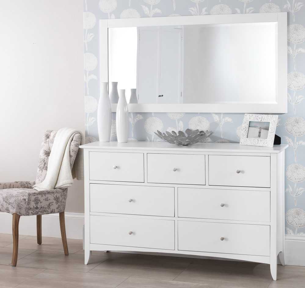 Часто встречаются комоды в светлых тонах. Они более универсальны и могут вписаться в самый разнообразный интерьер. Если выбрать модель с зеркалом, оформленным багетом, то у вас получится оригинально украсить помещение, сделать его более изысканным.