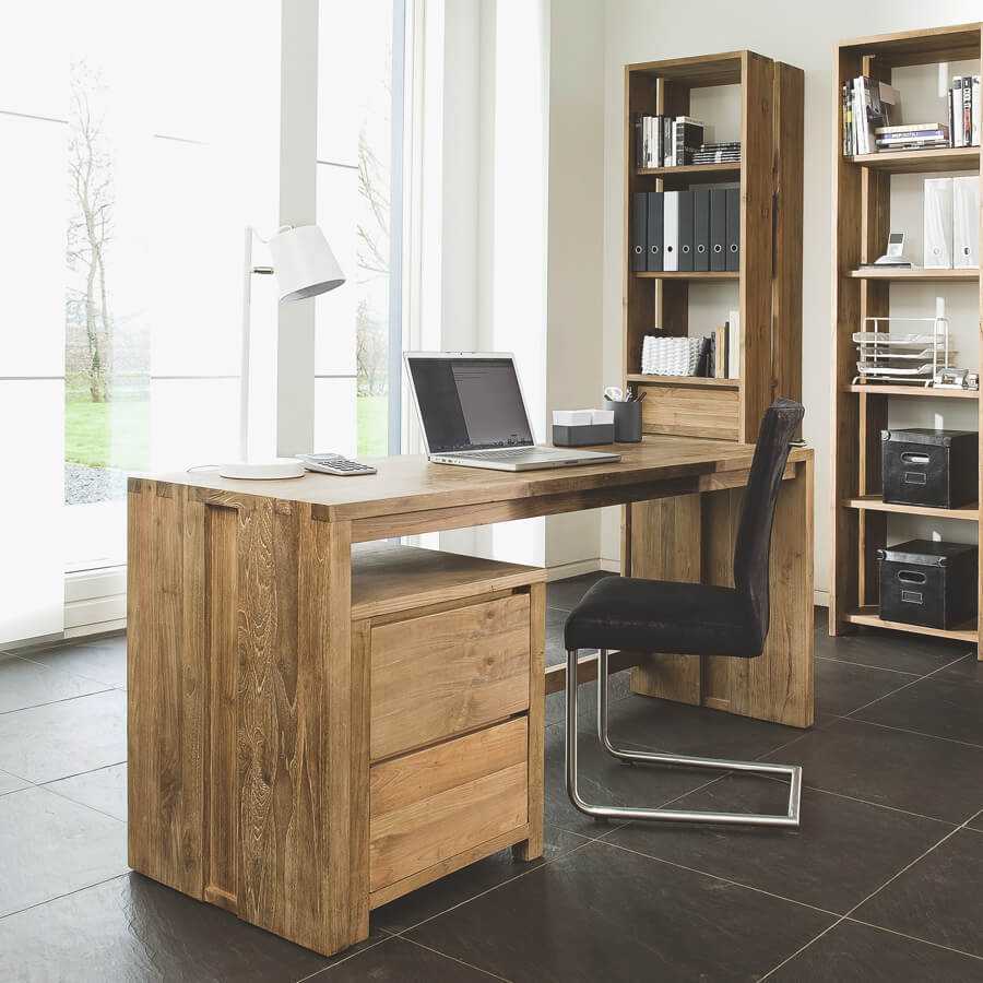 - Ничто не сравнится с прочным, надежным столом из массива дерева. Обладая статусным и благородным внешним видом, деревянный стол будет служить вам долгие годы. Это не только функциональная вещь, но и достойный элемент интерьера. Хороший письменный стол должен быть оснащен выдвижными ящиками для хранения важных документов. Он также может быть оснащен прикатной тумбой. В случае если вы планируете работать не только с бумажными носителями, но и использовать ноутбук или ПК, то письменный стол должен быть оснащен технологичными отверстиями для проводов техники и настольной лампы.