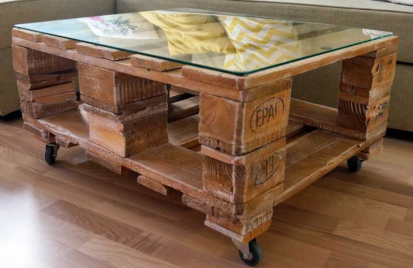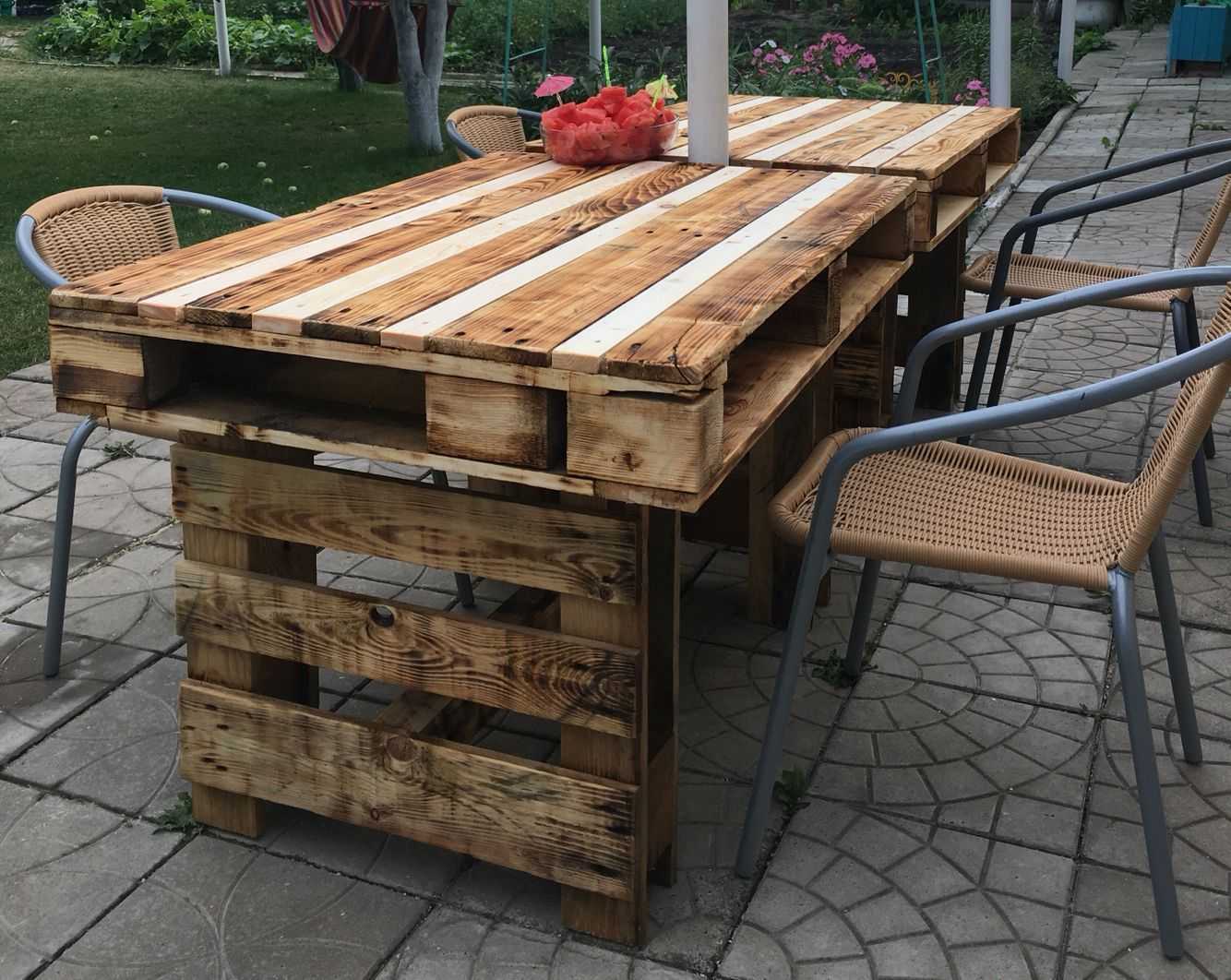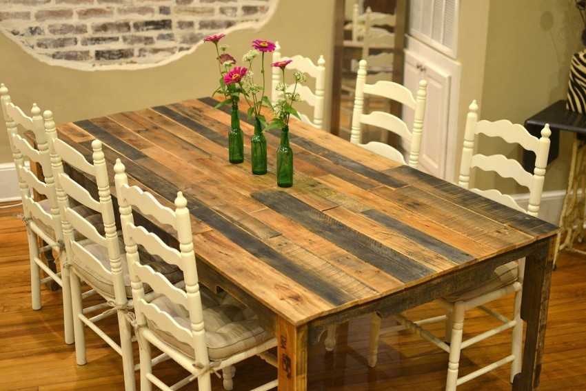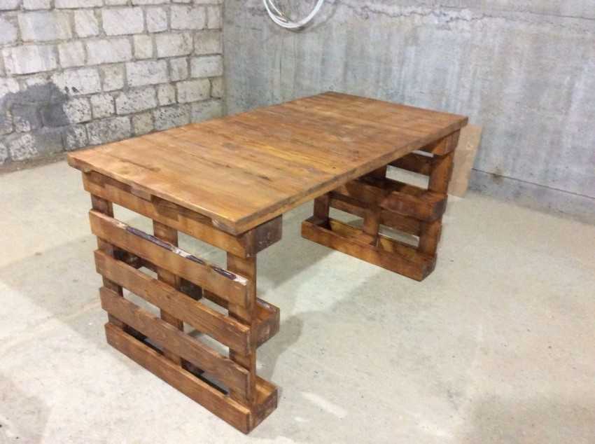 Из деревянных поддонов своими руками можно сделать отличные столы.