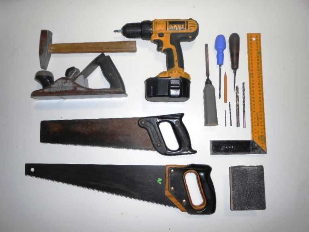 - Не будут лишними и пила с дрелью, которую может заменить шуруповерт со сверлом в патроне.