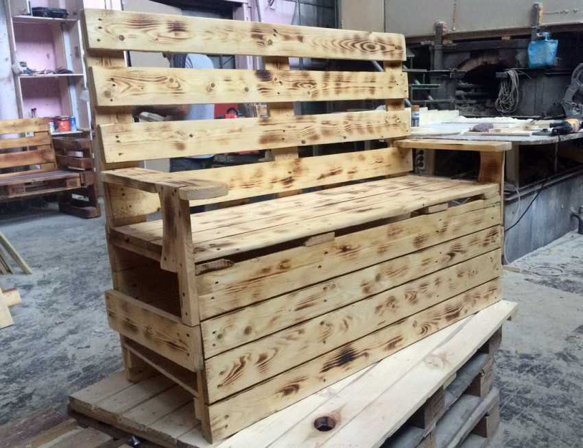 Готовая скамейка из поддонов способна выдержать существенные нагрузки