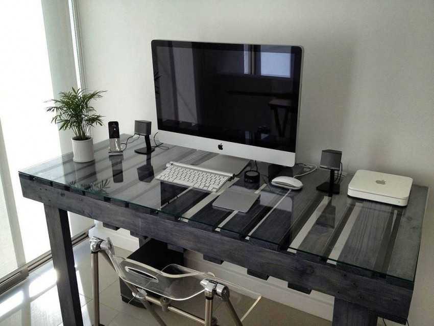 Столы из паллетов –прекрасно выглядят даже в офисах.
