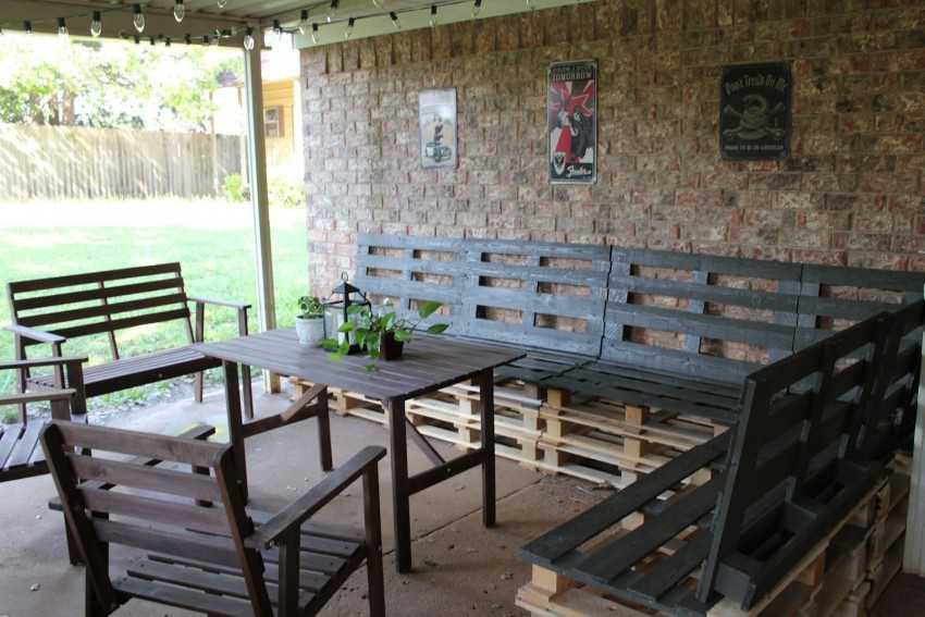 Мебель, полностью сделанная из паллетов или поддонов, выглядит достаточно интересно, качественно и добавляет комфорт в помещения. Установить и размещать ее можно в любой комнате частного дома, на террасе, веранде или в саду.