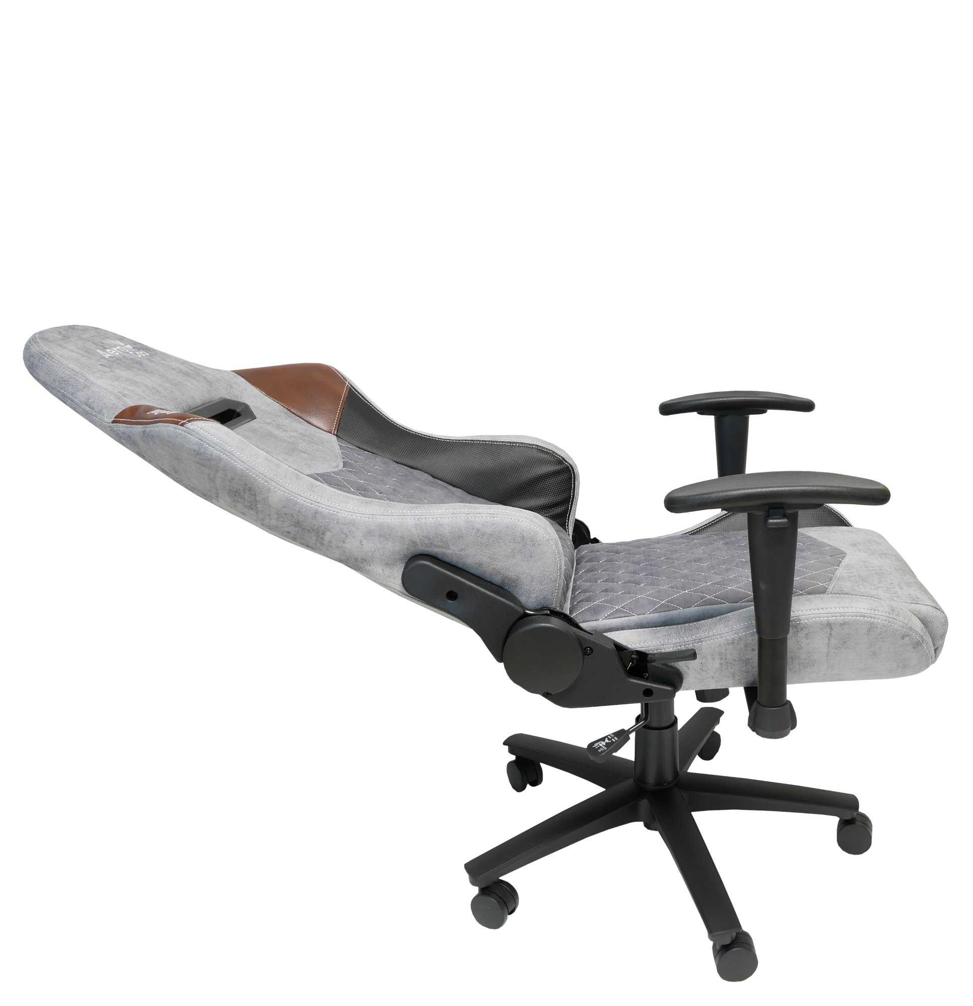 Эта модель также относится к категории профессиональных игровых кресел. У кресла эргономичная форма с поддержкой сбоку для спины и поясницы. Наклон высокой спинки легко регулируется, а спина и шея поддерживаются специальными подушечками.