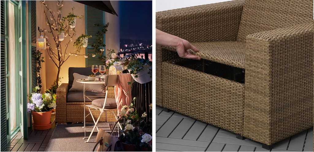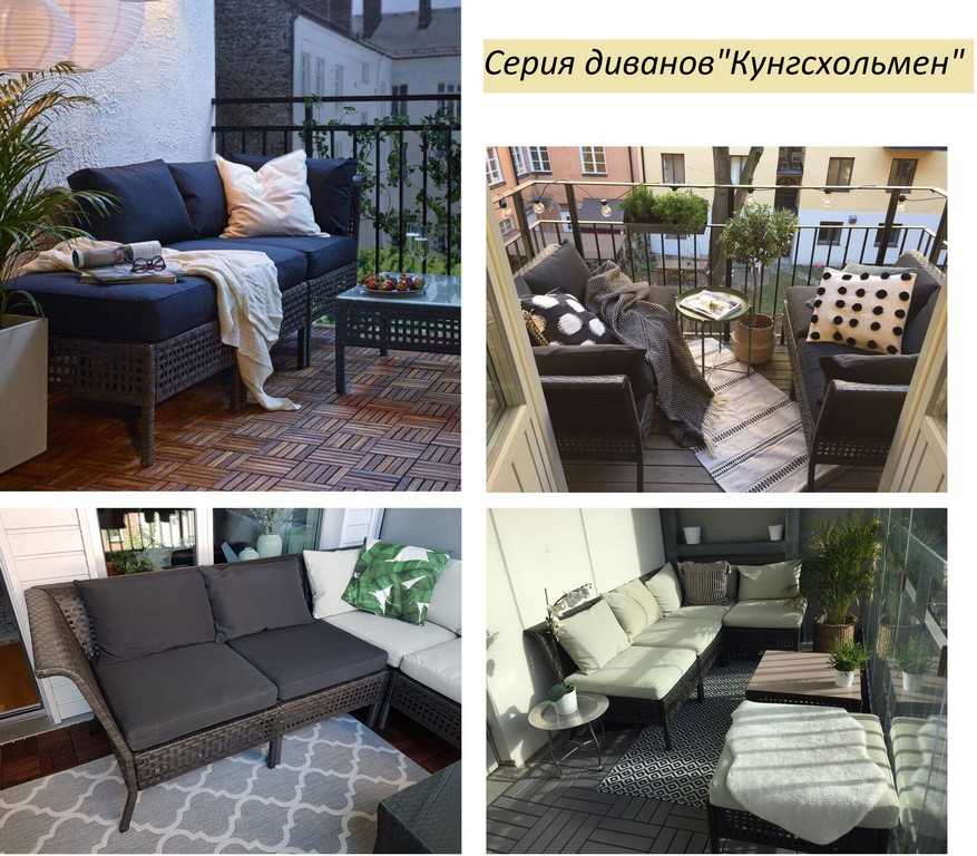Для обустройства зоны отдыха можно выбрать диван, удобные кресла, складные стулья. Популярные серии, созданные специально для обустройства лоджий и веранд, перечисляю ниже.
