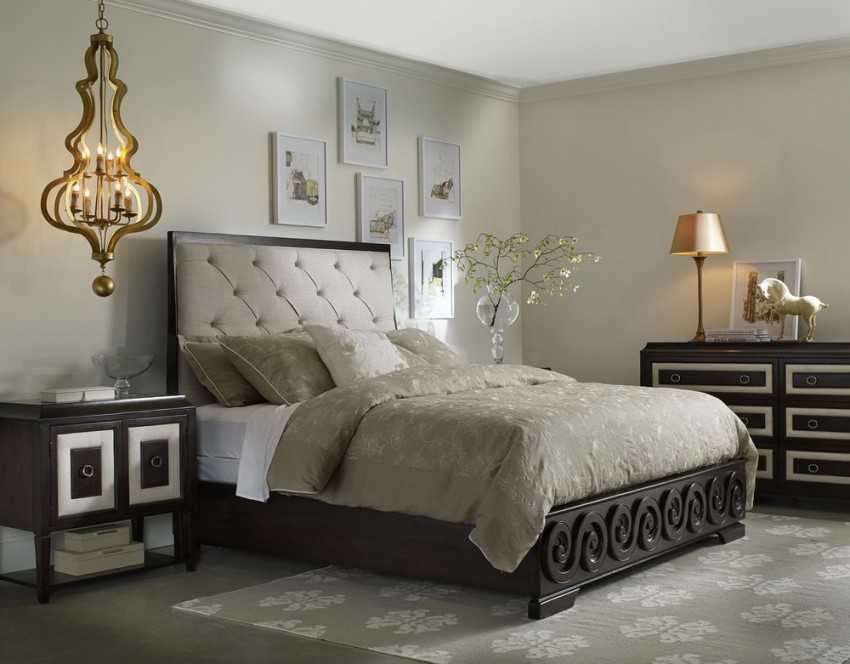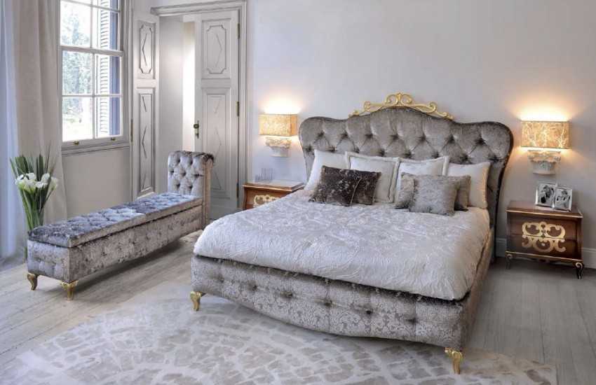 Кровать с мягким изголовьем отлично смотрится в спальне с классическим дизайном