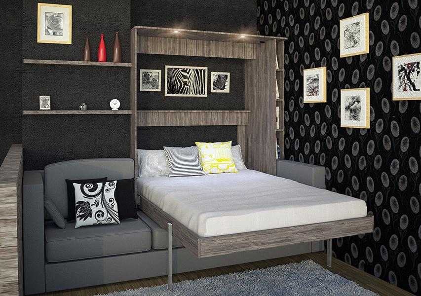 Этот тип пользуется спросом в последнее время, так как объединяет в себе функции спального места и шкафа. Такой экземпляр состоит из места для сна, механизма для подъема, короба для хранения.