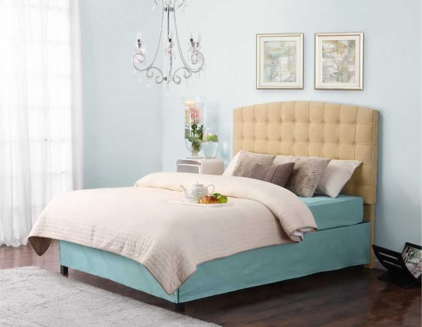 На фото кровать со спинкой, выкрашенной в тот же цвет, что и стена.