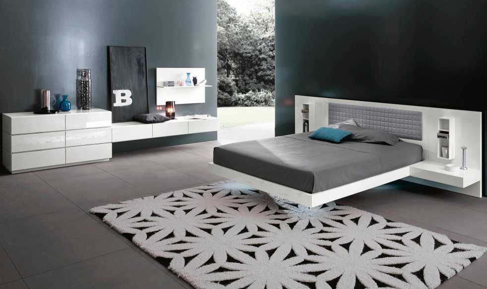 Нельзя не сказать о том, что при установке кровати с низкой мягкой обивкой важно сделать акцент на декоре – ярком, броском, контрастном, тогда вся остальная «спальная» мебель может быть лаконичной и светлой