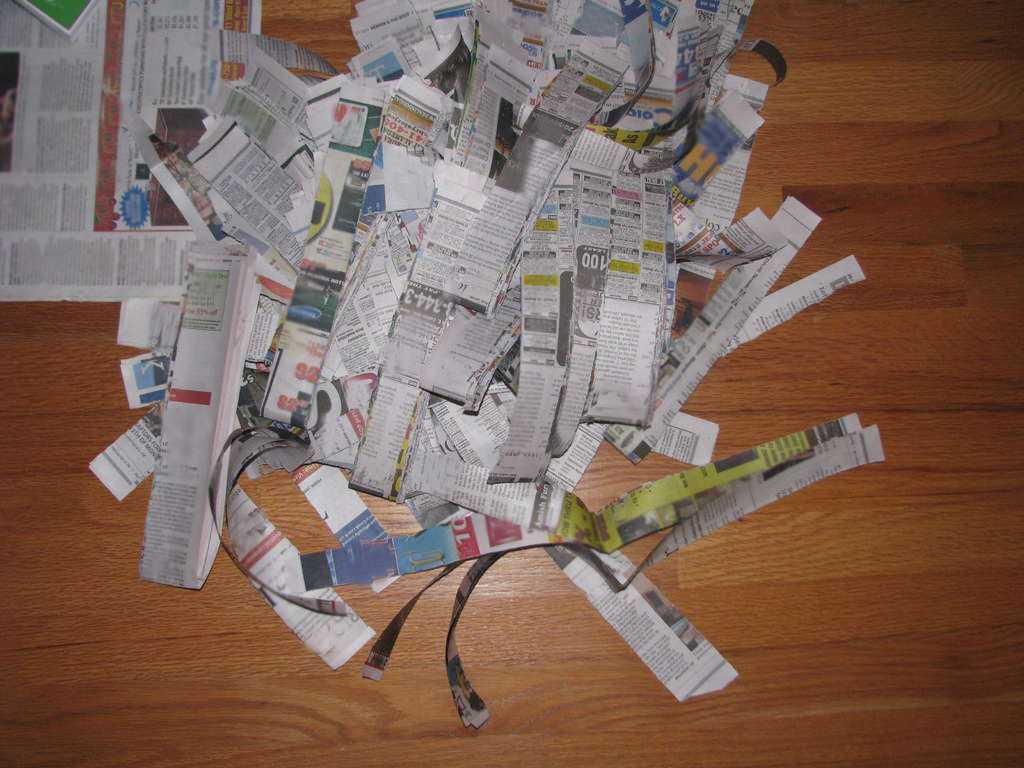 3. Нарвите полосок из газет. Ширина полосок около 4 см. Полоски не обязательно должны быть одинаковыми, ровными и аккуратными. Главное не делать их слишком широкими, чтобы при оклейке они не морщились.