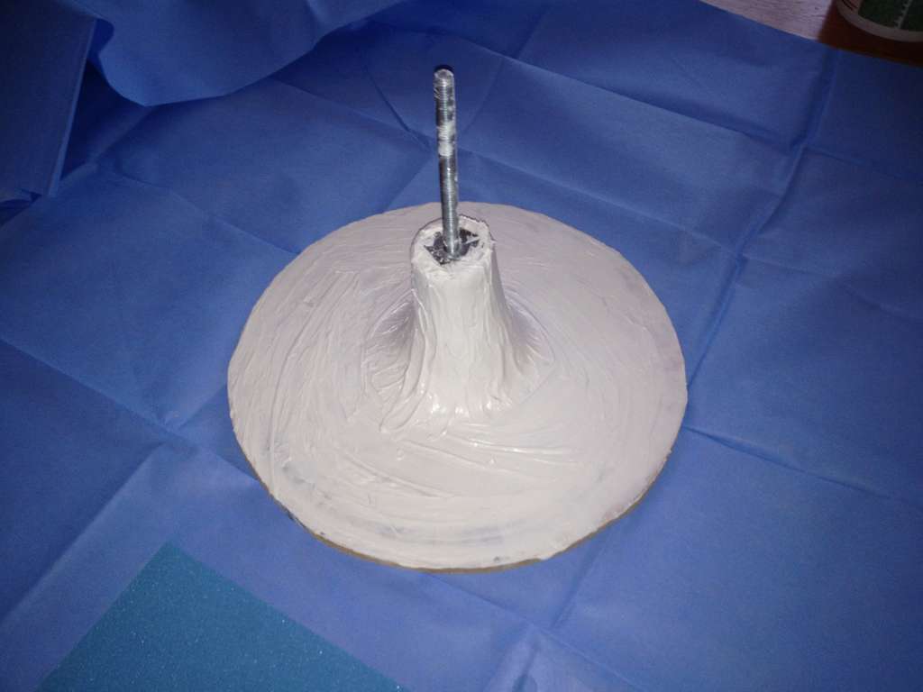 4. С помощью скотча и газет сделайте плавный переход от основания к трубе.