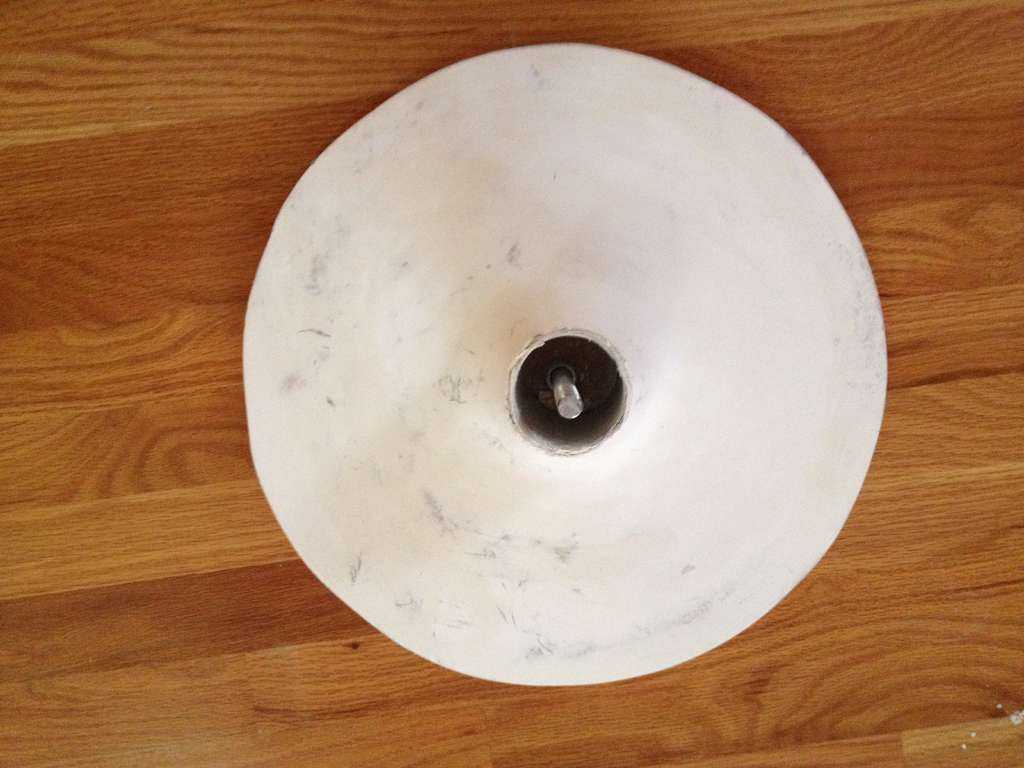 2. В центре круга просверлите отверстие. Диаметр отверстия должен соответствовать размеру гайки. Вставьте гайку в отверстие и ввинтите в нее резьбовую шпильку.