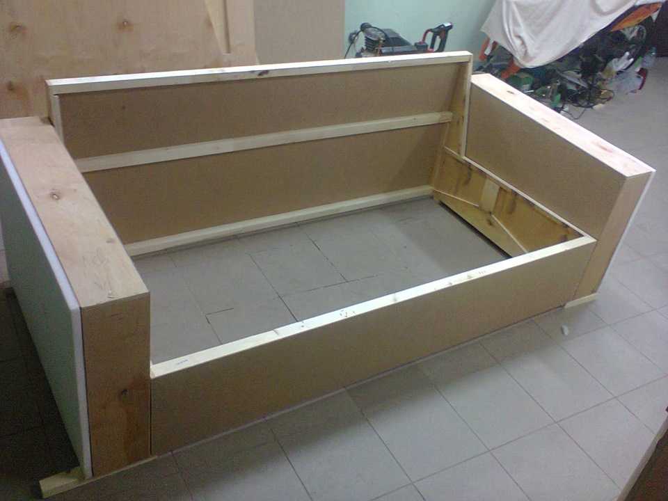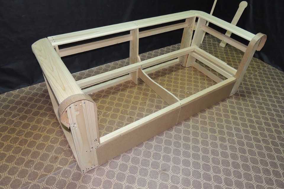 Каркас дивана – это основа, а дальше возможны вариации с подлокотниками и без, нишами и дополнительными полками.