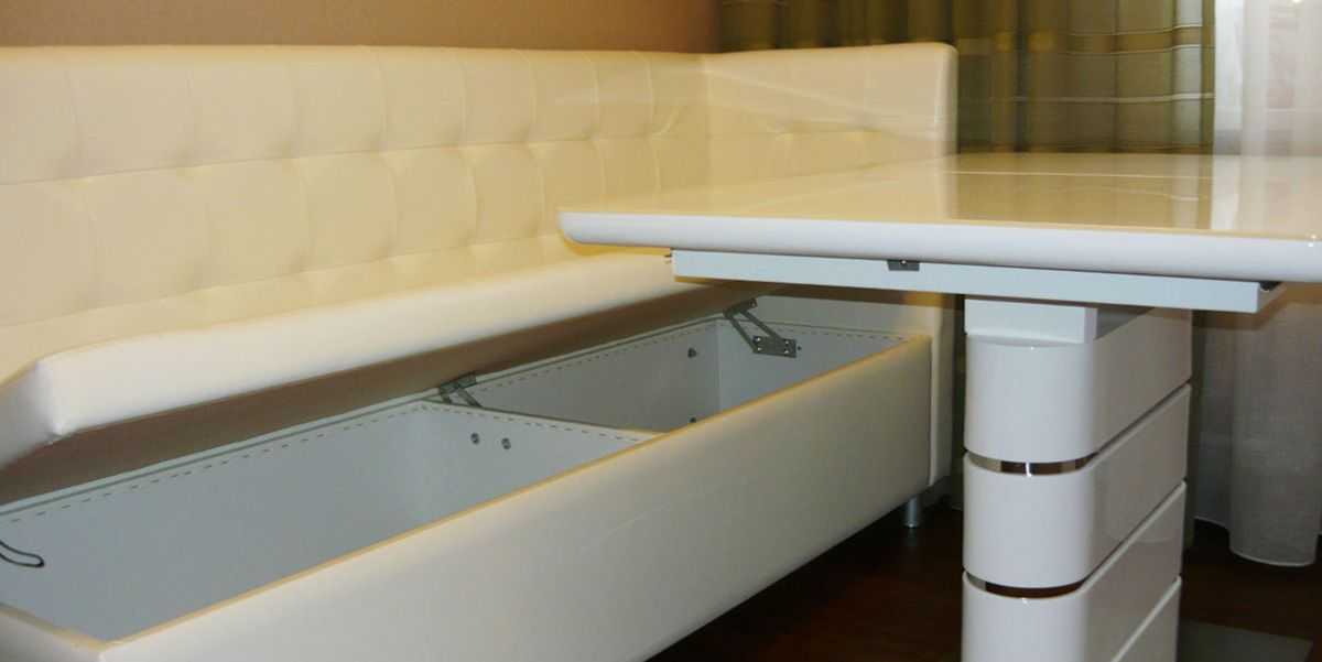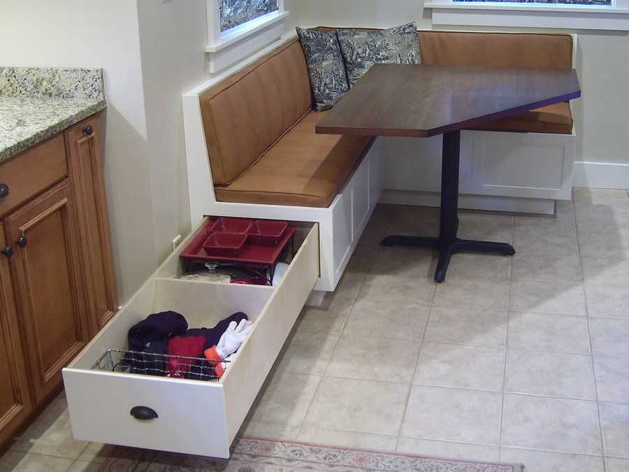 Выдвижной вариант ящика для хранения в кухонном диване более удобен.