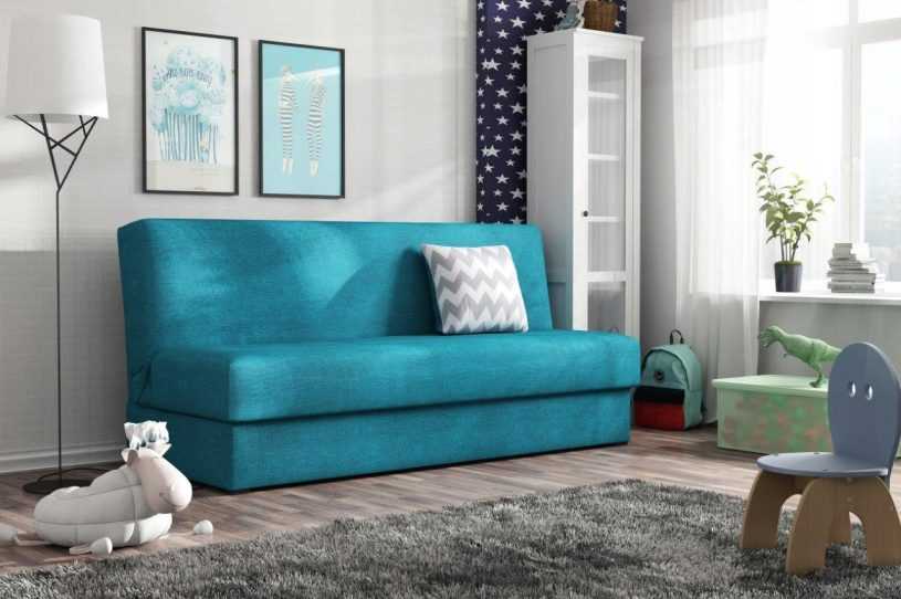 Самыми востребованными не первый год остаются модели-книжки. Для обустройства спального места сидушка выдвигается вперед, а спинка наклоняется горизонтально. Внутри мебели остается место для хранения постельных принадлежностей. Для маленького раскладного дивана подойдет механизм еврокнижка.