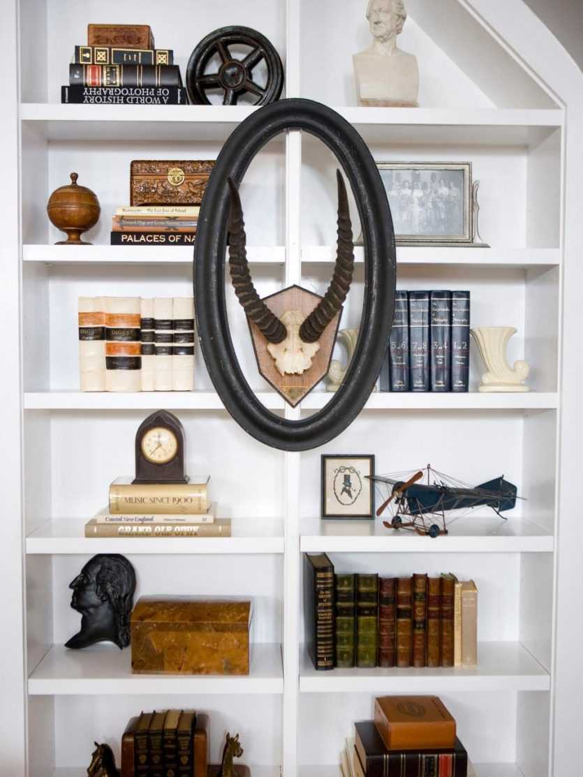 Элементы которые размещаются на полке должны дополнять стиль комнаты