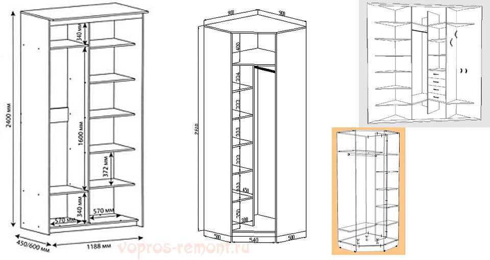 Пожалуй как выбрать шкаф для одежды уже понятно. Но возникает вопрос: “Где установить мебель после покупки?”. Для этого следует изучить комнату размещения, замерять пространство и определить высоту стен. Если в комнате имеется незанятый угол, можно отдать предпочтение угловым конструкциям или остановить выбор на линейно модели.