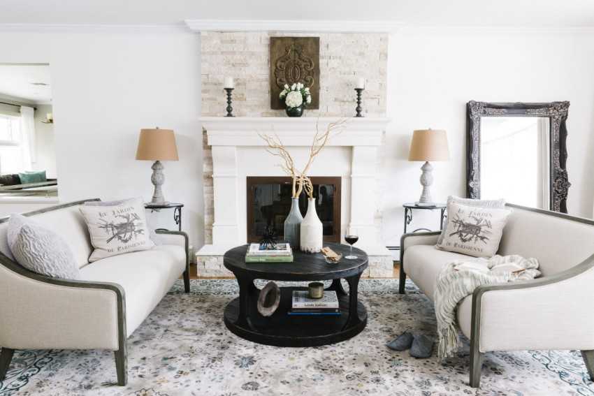 Не совсем традиционное решение для журнального столика – «бабушкин» сундук. Он настоящий, к тому же вносит нотку старины в интерьер гостиной и делает его запоминающимся. Этот стол-сундук многофункционален: внутри можно хранить вещи, он выдержит даже самовар.