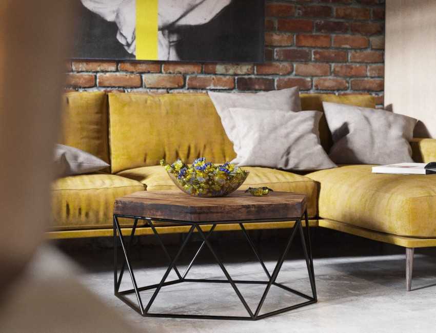 Журнальные столики направления лофт всегда необычны. Свойственные этой стилистике брутальность и резкость не обошли стороной и предметы мебели, для изготовления которых используется так любимые этим стилем материалы – сталь и металл. Вариантом этого стиля служит стол из дуба, а вместо ножек совсем немаленькие колеса. Еще одно нестандартное решение с индустриальными нотками – столик из куска бетона. Сильное впечатление производит этот материал именно там, где менее всего его ждешь. А чтобы передвигать стол, который весит 130 кг, его оснастили роликами из металла.