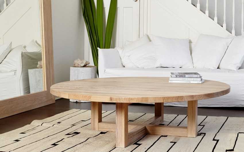 Еще один распространенный материал, который вовсю используют дизайнеры – древесина. Для конструкции столиков могут применять самые разные типы древесины. Качественный бук, ясень, или клен, к примеру, приятно радуют не только своей прочностью, но и экологичностью и натуральностью. Поскольку натуральная древесина стоит достаточно дорого, ее часто заменяют более дешевыми материалами вроде МДФ или ДСП. Из древесины и ее заменителей делают не только простую модель с квадратными или круглыми столешницами, но и изделия необычной формы.