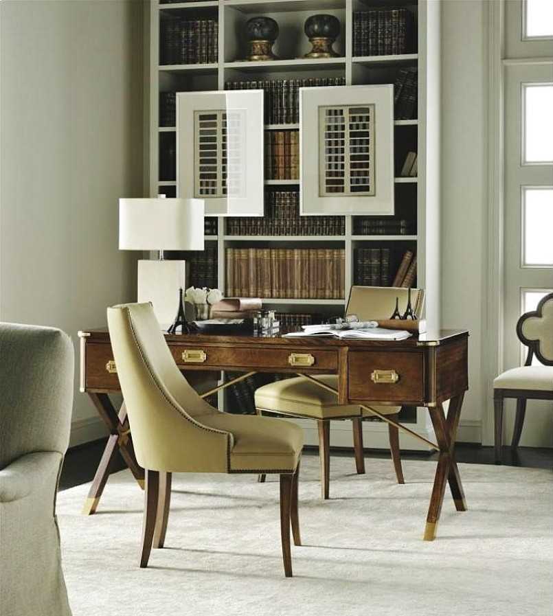 - Добротный стол из красного дерева, столешница которого украшена кожаными вставками, будет смотреться органично как в кабинете генерального директора крупной фирмы, так и в домашнем рабочем уголке.