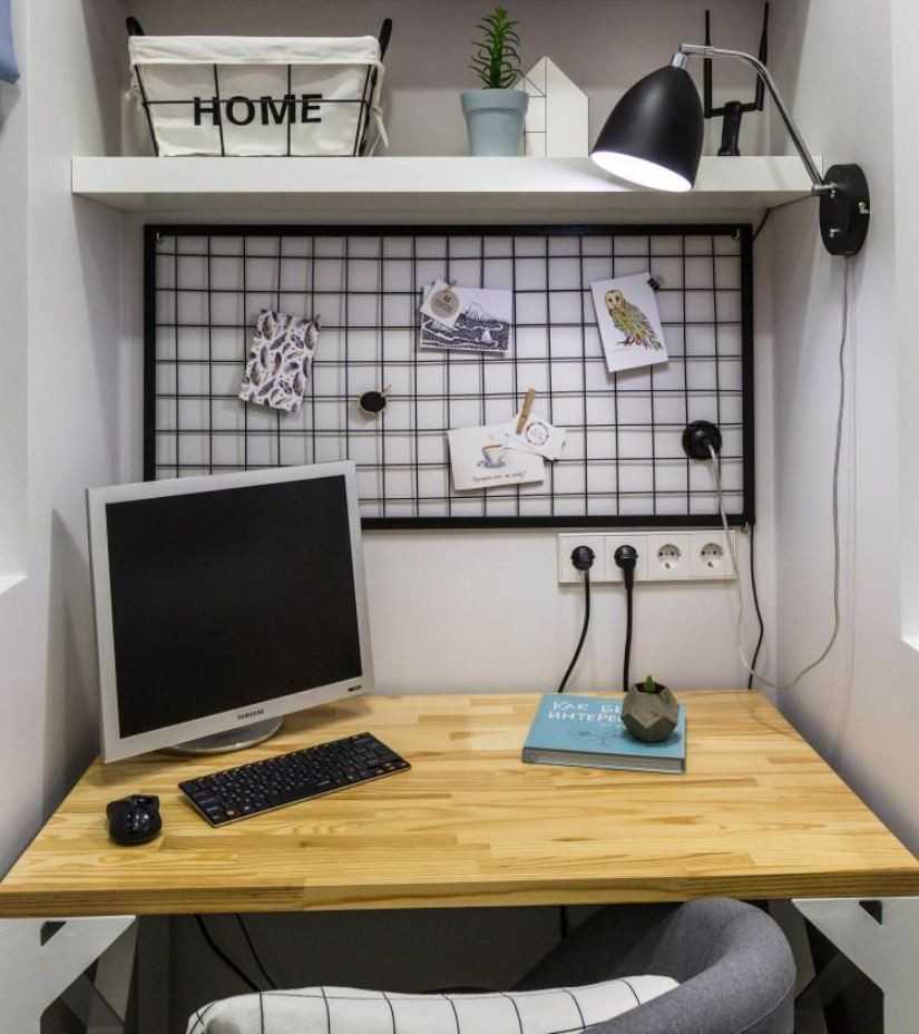 Часть стены, к которой примыкает письменный стол, можно необычно и с пользой оформить, установив здесь панель ДВП или меловую доску. Теперь легко фантазировать над дизайном рабочей зоны, дополняя ее календариками, заметками, мотивирующими цитатами, рисунками и прочими мелочами.