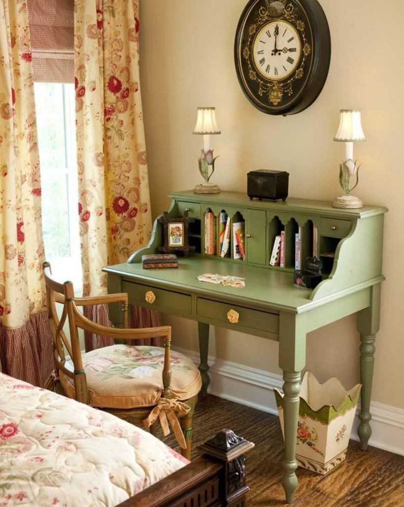 - Темный секретер в светлой комнате стиля Кантри будет вполне уместен.
