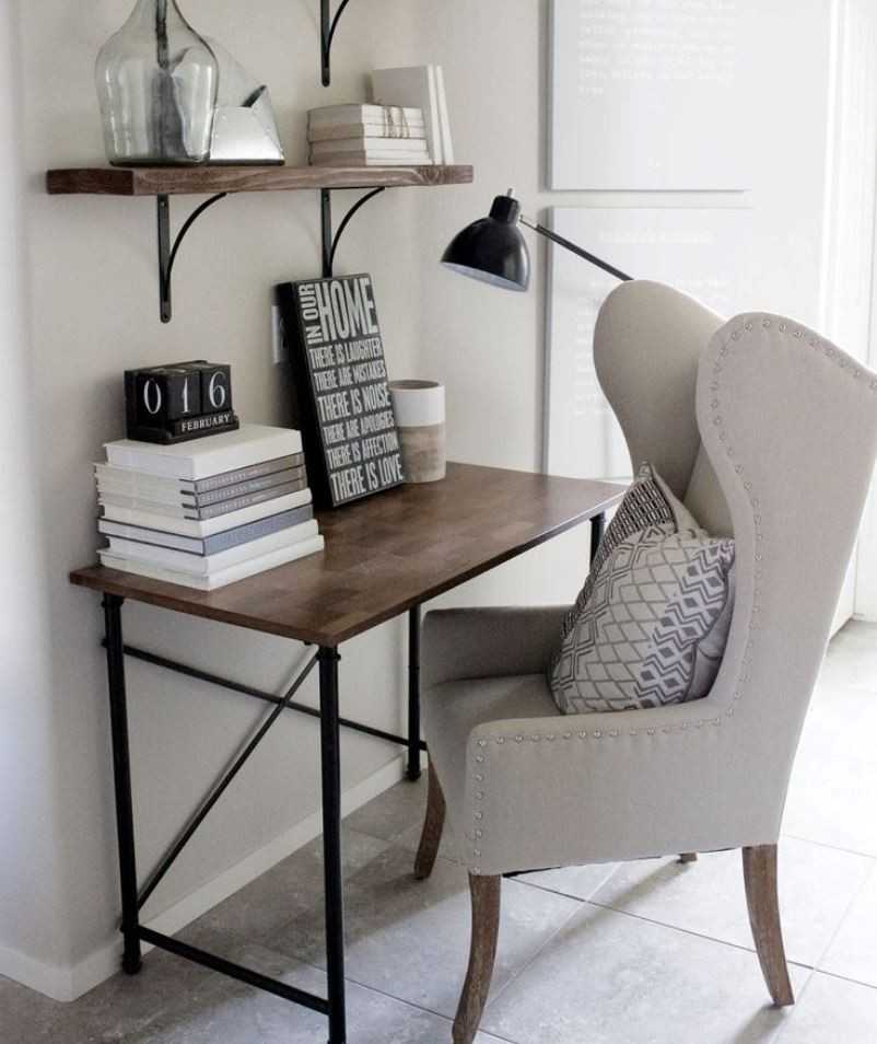 - В идеале ширина столешницы должна быть не меньше одного метра, но если комната маленькая, можно обойтись более компактной мебелью. Минимальный размер столешницы, достаточный для того, чтобы учебники, рабочие тетради, канцелярские товары и остальные ученические принадлежности поместились во время выполнения задания по одному предмету — 60*60 сантиметров.