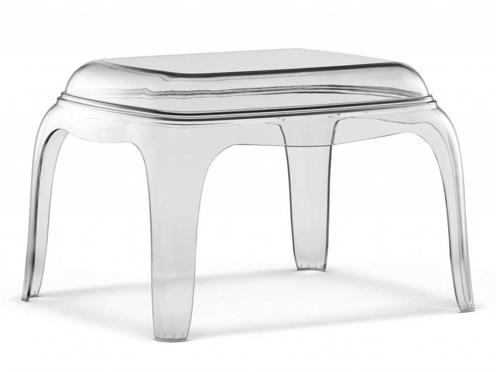 Прозрачный стол из поликарбоната лучше покупать одновременно со стульями, чтобы избежать недоразумений, когда, при одинаковых технических данных, в разных партиях поступает мебель немного разных оттенков. Литая мебель изготавливается цельной, но существуют модели, в которых сиденье является накладным и делается из пластика другого цвета.