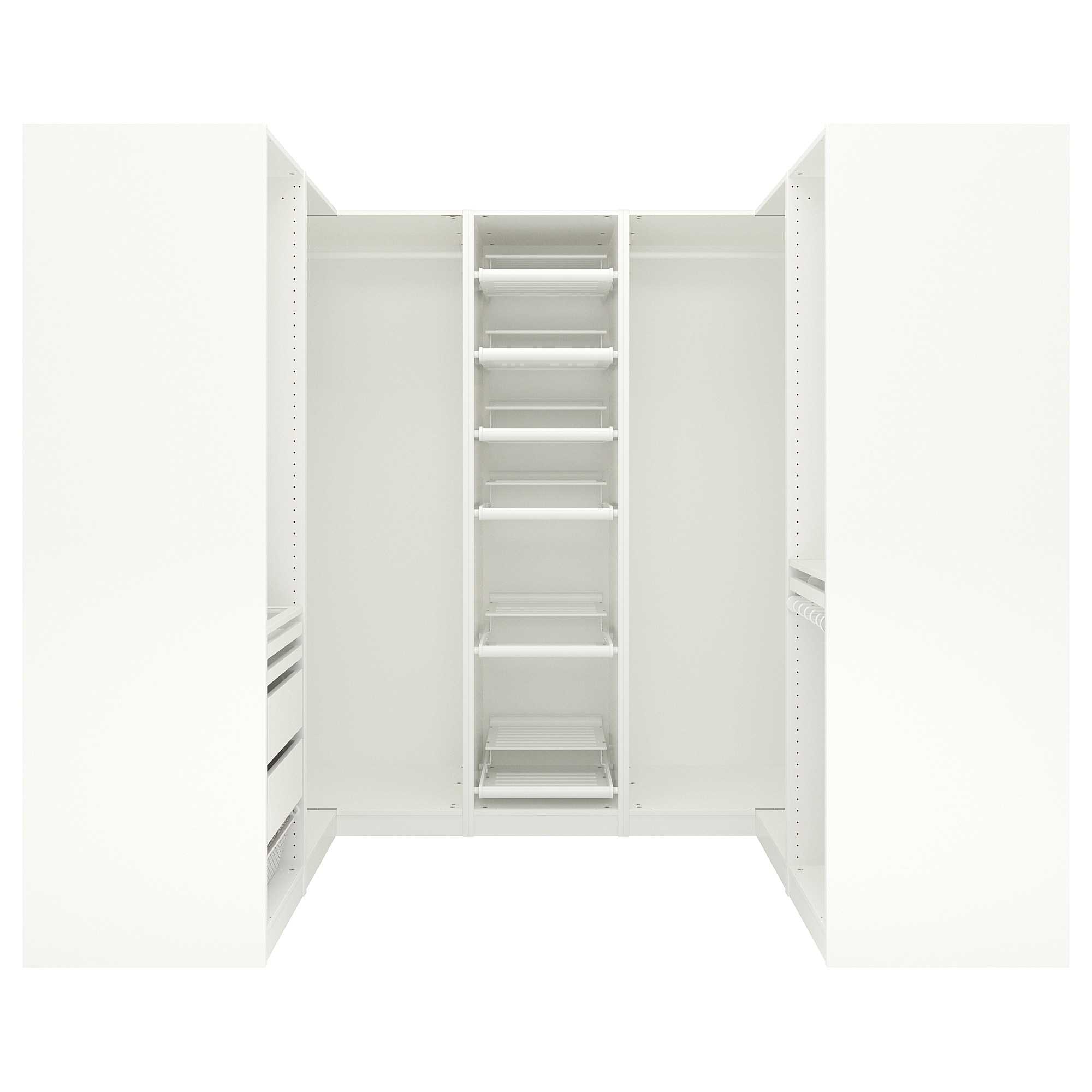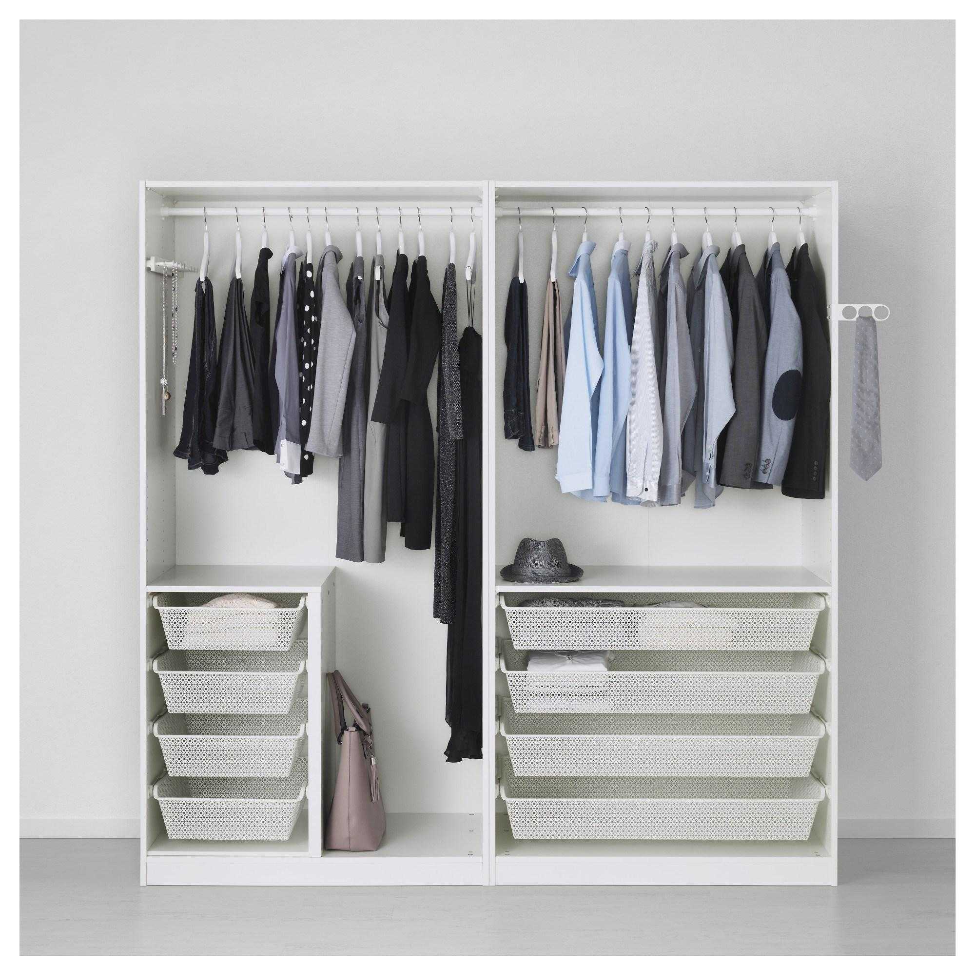 Кстати, узкие шкафы ПАКС — это еще и «продолжение» имеющегося гардероба — комбинация с дверями.Ее привинчивают крепежами к каркасу системы хранения. Удобно продумана дверь, легко устанавливаемая и с левой и с правой стороны модели.