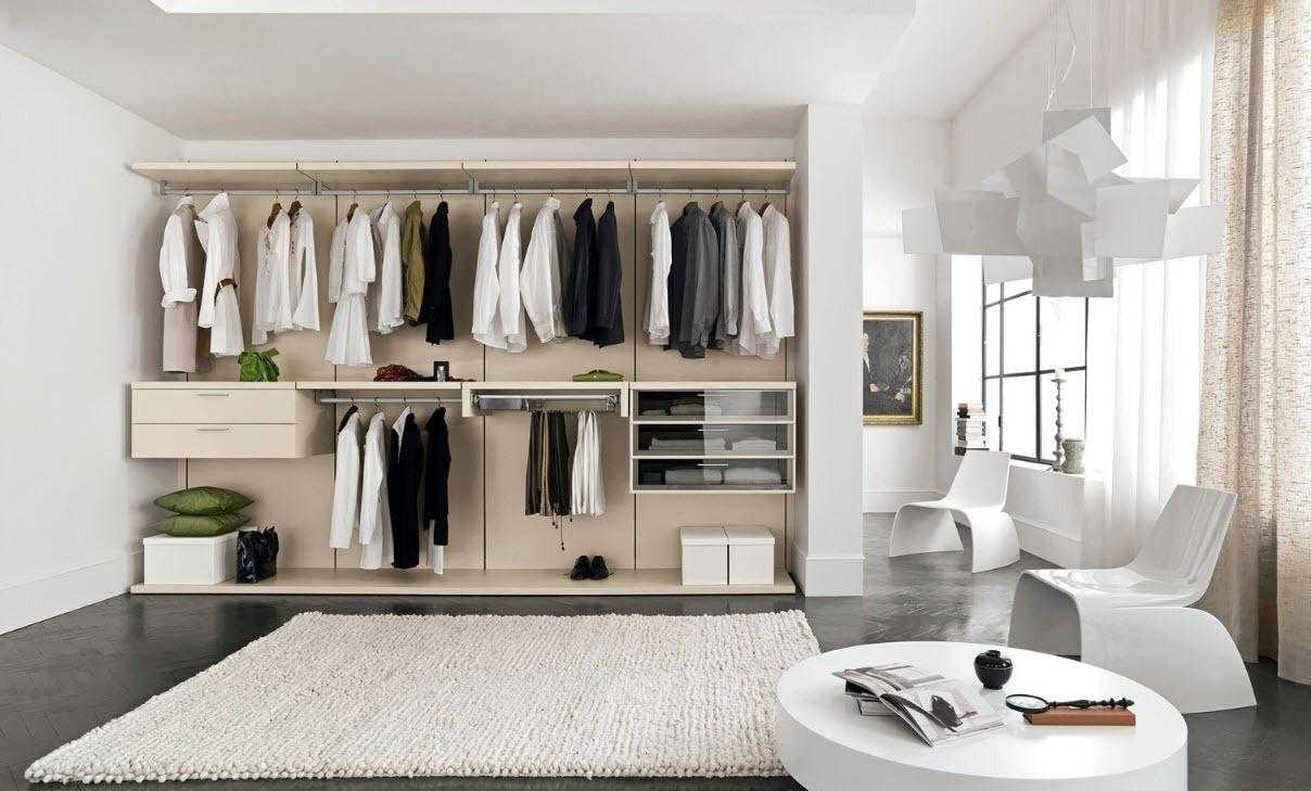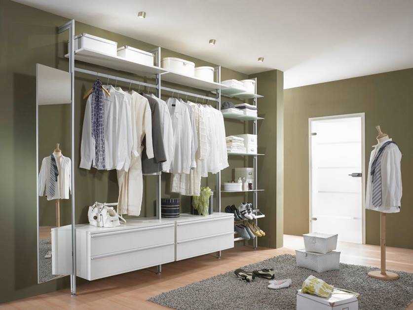 Для этого отлично подходят и мини-гардеробные. Вы можете сэкономить, если у вас есть ниша — там можно разместить открытую гардеробную, которая дешевле шкафа с их задней и боковыми стенками, фасадами дверей.