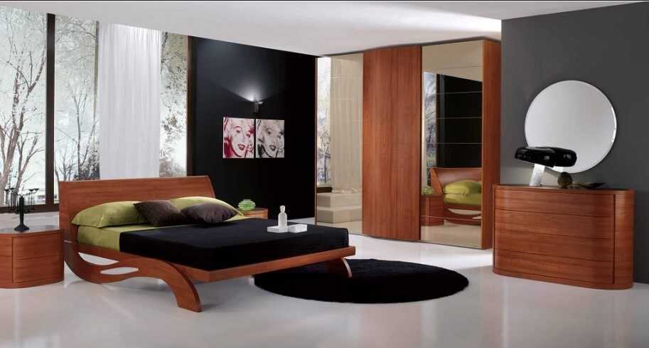 Остается популярным трюмо с зеркалом, а оригинальность интерьеру придадут два симметрично расположенных зеркала над прикроватными тумбочками. Причем конструкция аксессуара может иметь самую разную форму.