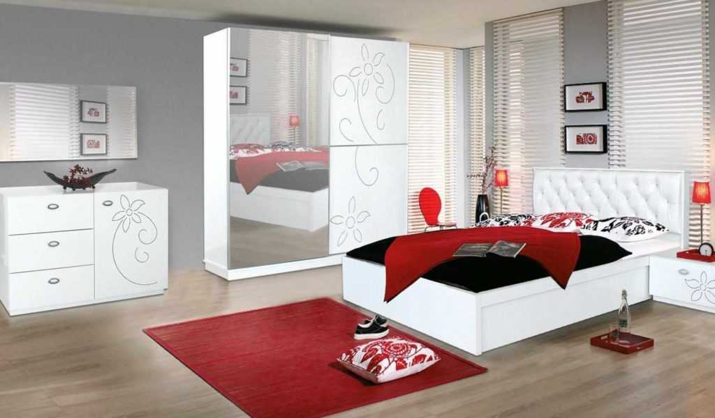 В спальню органично впишется встроенный угловой или радиусный шкаф. Продумайте также внутреннее наполнение, обязательны ящики для хранения нижнего белья и носочно-чулочных изделий. Красиво оформить фасад поможет фотопечать или пескоструйный рисунок. Интересным решением станут большие цветы, абстракции с плавными линиями, спокойные природные пейзажи. Можно подобрать и шкаф без декора – блестящая глянцевая или зеркальная поверхность уже сама по себе украшение.