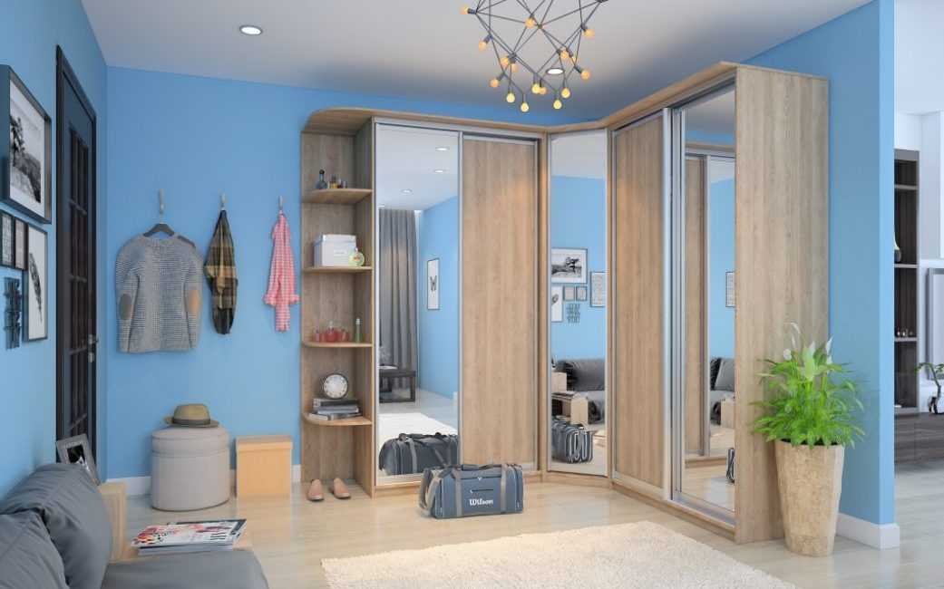 Угловой шкаф — это великолепный способ рационально распределить комнатное пространство в небольшом помещении.