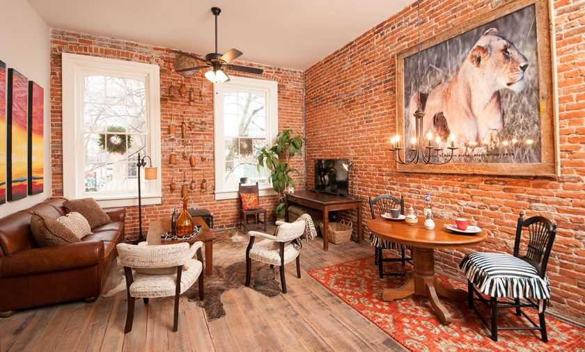 - Для отделки разрешается применять камень или кирпич либо имитирующие их материалы, а также обои с необычной текстурой.