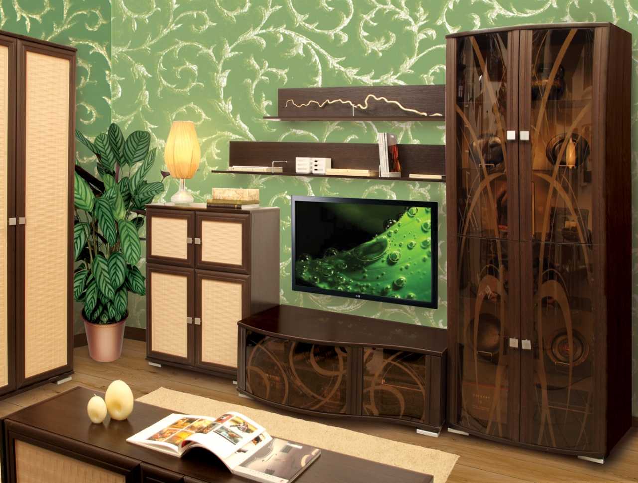 Перед выбором настенного шкафа необходимо решить, какой будет общая визуальная композиция гостиной комнаты. Когда выбран дизайн помещения, можно переходить к выбору и приобретению мебели.