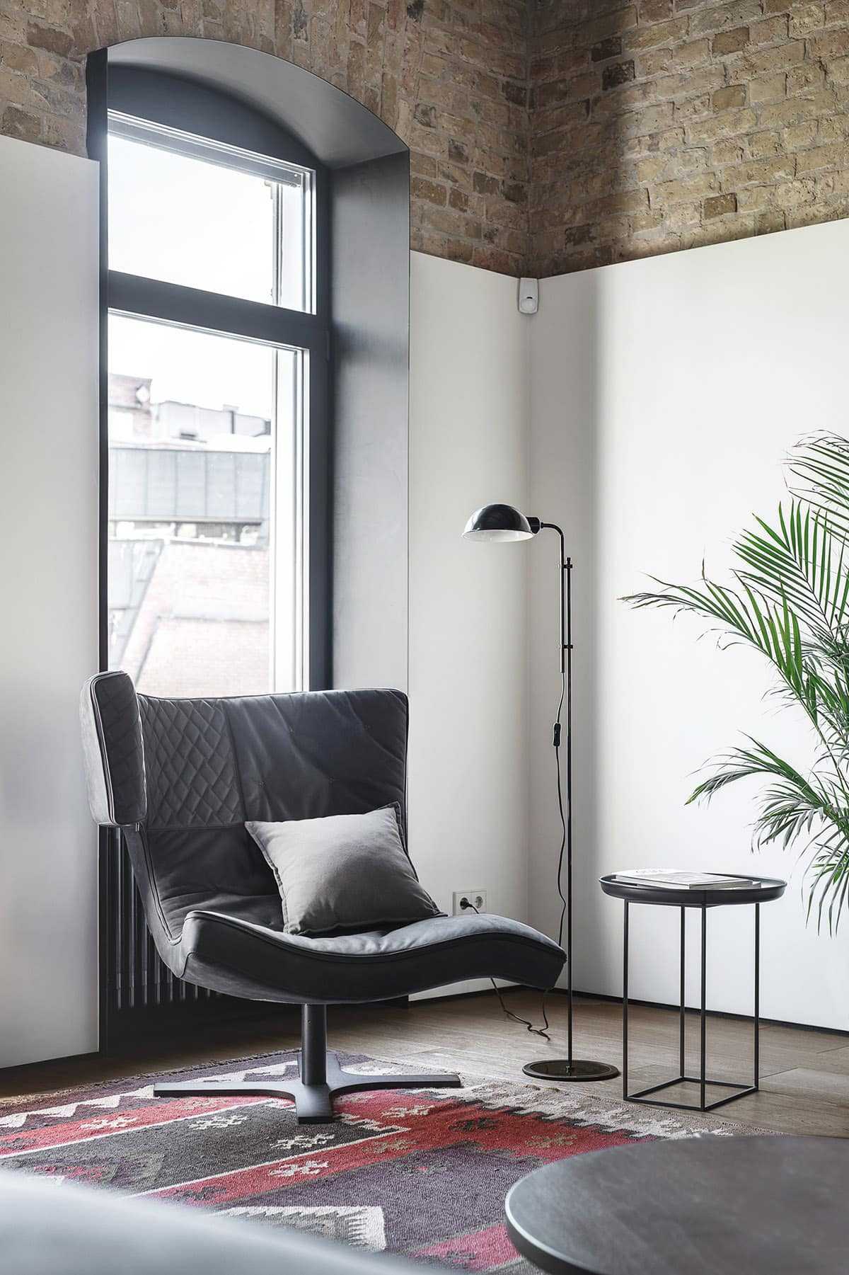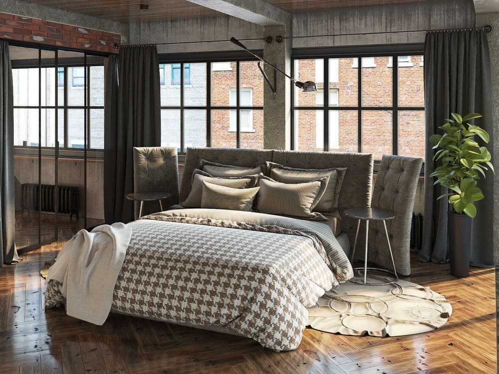 Высокий потолок и большие выразительные окна — все это черты индустриального стиля лофт