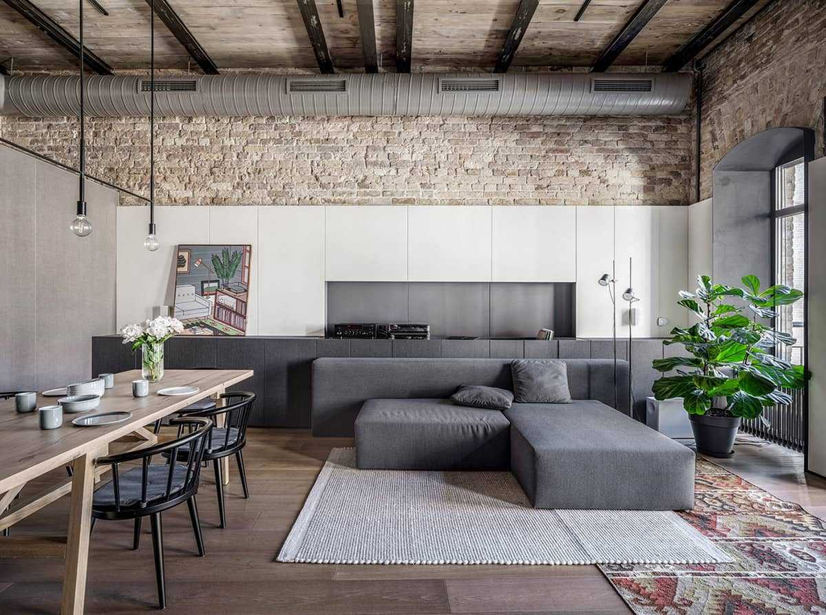 Чтобы ваш дизайн выглядел гармонично, важно помнить, что стиль лофт в интерьере – это такое дизайнерское направление, где при организации жилого пространства обязателен сдержанный подход. Сюда не нужно покупать много мебели, в числе которых будет плюшевый диванчик, яркое кресло или цветной ковер