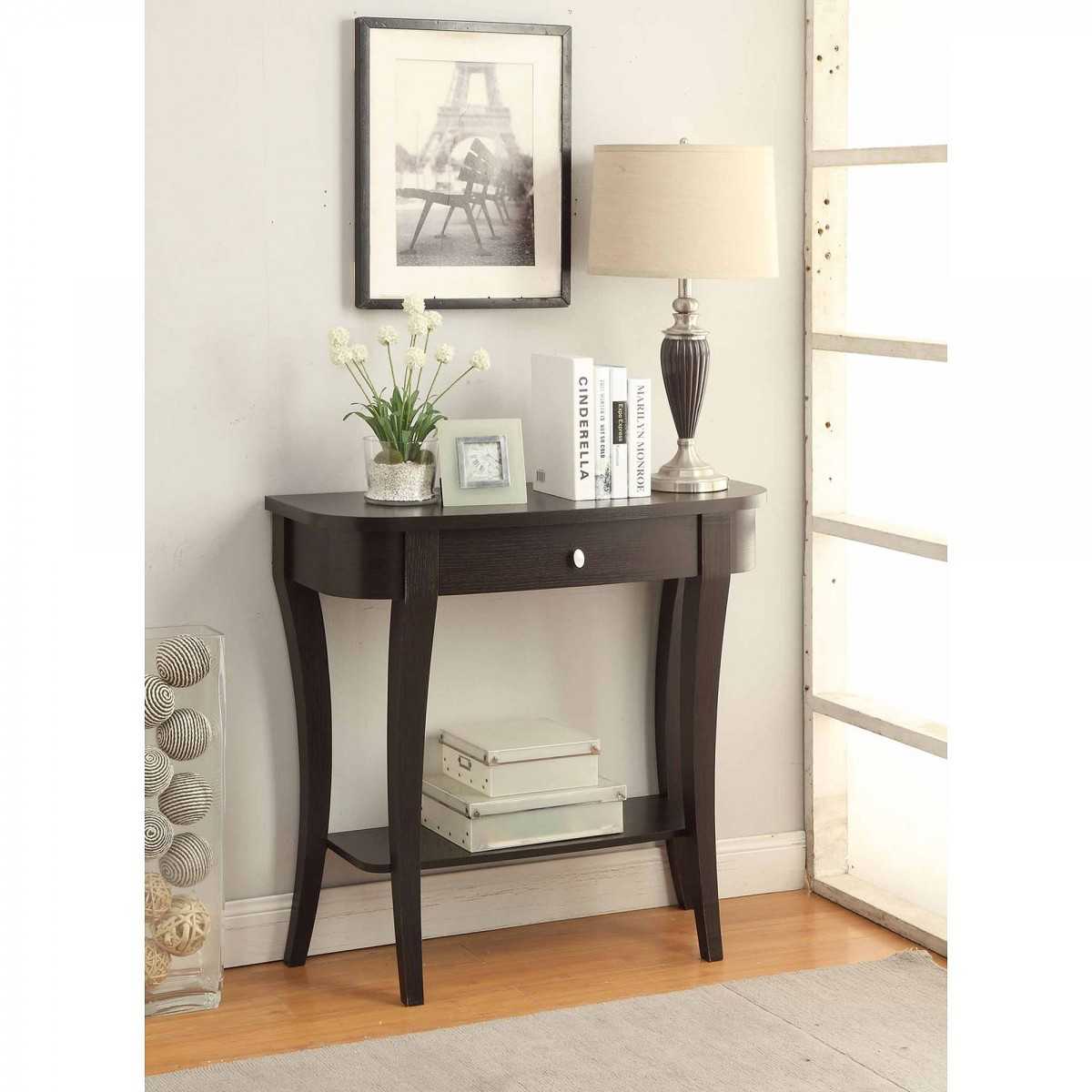 В прихожей, как и в комнате, такой столик может выполнять декоративную функцию. А в небольшом коридоре этот предмет может стать весьма практичным элементом для хранения ключей, перчаток и газет.
