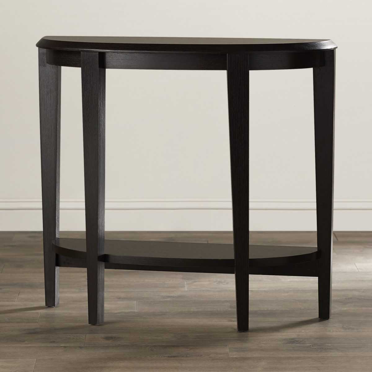 Эффектным решением считается черная консоль, которая роскошно смотрится в глянцевом исполнении. Однако при этом оттенок стен должен быть светлым, чтобы стол не затерялся на общем фоне. Черный столик шикарно подходит для стилистики минимализм, hi-tech и арт-деко.